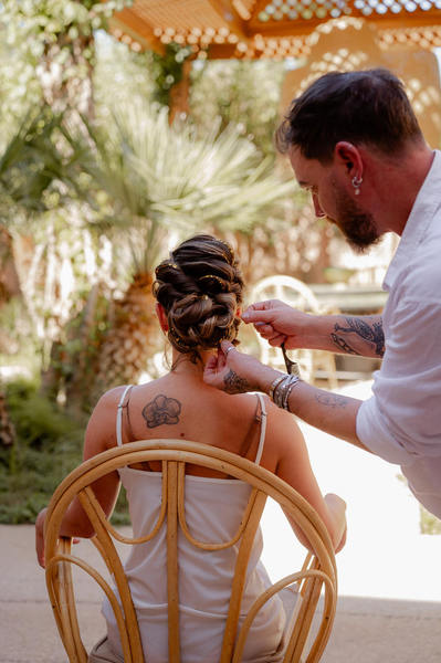 Désormais, je me déplace en France ou à l'étranger pour m'occuper de votre coiffure de mariage ✈️. Notre service de coiffure événement vous garantit une allure parfaite pour chaque occasion spéciale.